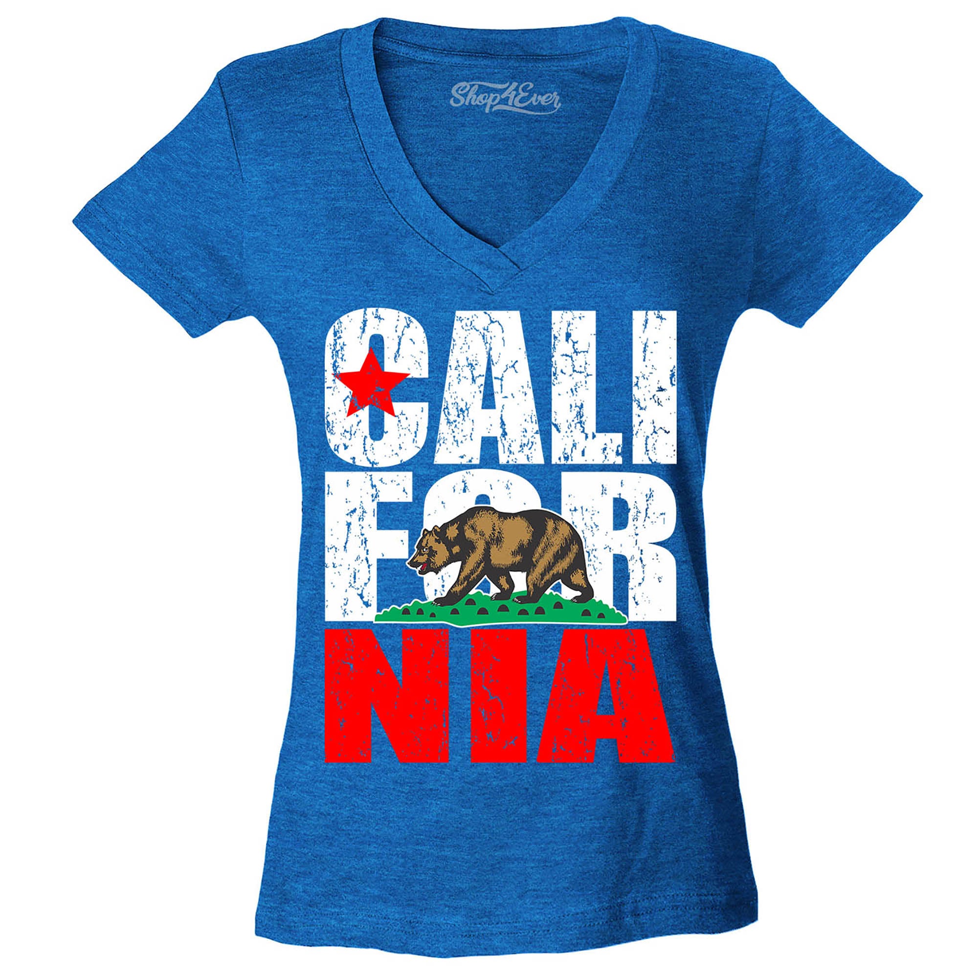 California State Flag Bear Women's V-Neck T-Shirt Shirts Slim FIT